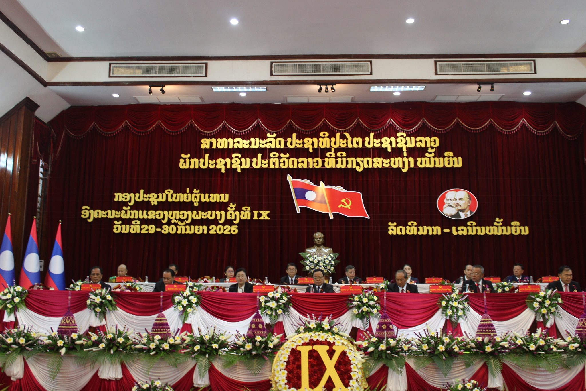 ກອງປະຊຸມໃຫຍ່ຜູ້ແທນອົງຄະນະພັກ ແຂວງຫຼວງພະບາງ ຄັ້ງທີ IX ໄດ້ໄຂຂຶ້ນໃນ ວັນທີ 29 ກັນຍາ 2025, ທີ່ຫ້ອງປະຊຸມໃຫຍ່ຫ້ອງວ່າການແຂວງ ໂດຍການເຂົ້າຮ່ວມ ຂອງສະຫາຍ ຄຳພັນ ພົມມະທັດ, ກຳມະການກົມການເມືອງສູນກາງພັກ, ປະທານຄະນະກຳມະການກວດກາພັກ-ລັດ, ຫົວໜ້າອົງການຕ້ານການສໍ້ລາດບັງຫຼວງຂອງສູນກາງ, ສະຫາຍ ສຈ ປອ ນາງ ວຽງທອງ ສີພັນດອນ, ເລຂາທິການສູນກາງພັກ, ເລຂາຄະນະບໍລິຫານງານພັກ, ປະທານສານປະຊາຊົນສູງສຸດ, ພາຍໃຕ້ການເປັນປະທານ ຂອງສະຫາຍ ຄຳຂັນ ຈັນທະວີສຸກ, ກຳມະການສູນກາງພັກ, ເລຂາຄະນະບໍລິຫານງານພັກແຂວງ, ເຈົ້າແຂວງຫຼວງພະບາງ, ມີສະຫາຍ ດອນ ໄພວົງ, ຮອງຫົວໜ້າຄະນະຈັດຕັ້ງສູນກາງພັກ, ມີບັນດາຮອງເລຂາພັກແຂວງ, ຮອງເຈົ້າແຂວງ, ຄະນະປະຈຳພັກແຂວງ, ກຳມະການພັກແຂວງ ແລະ ບັນດາສະຫາຍຜູ້ແທນສົມບູນ, ນັກປະຕິວັດອາວຸໂສບຳນານ ແລະ ແຂກທີ່ຖືກເຊີນເຂົ້າຮ່ວມ.