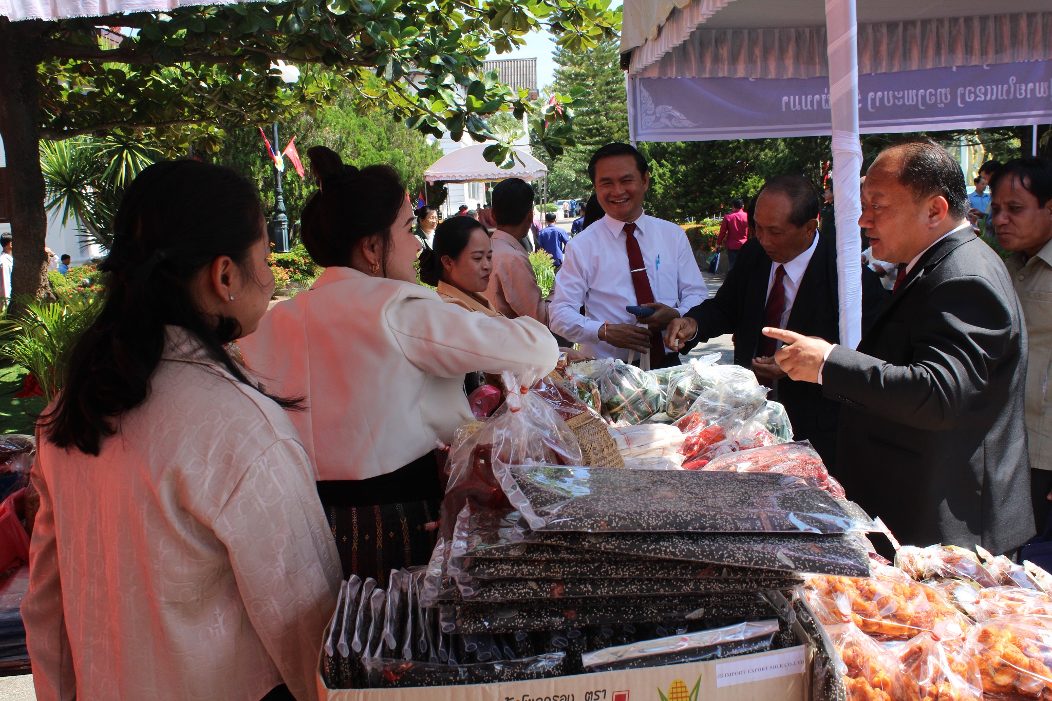ໂອກາດດຽວກັນນີ້ ສະຫາຍເລຂາພັກແຂວງ ຍັງໄດ້ນໍາພາຄະນະຜູ້ແທນກອງປະຊຸມໃຫຍ່ ແລະ ບັນດາແຂກຖືກເຊີນເຂົ້າທ່ຽວຊົມການວາງສະແດງຮູບພາບຂອງແຕ່ລະຂົງເຂດວຽກງານທີ່ໄດ້ຈັດຕັ້ງປະຕິບັດໃນຊ່ວງໄລຍະ 5 ປີ ຜ່ານມາ ພ້ອມທັງເລາະເບິ່ງສິນຄ້າ ແລະ ຜະລິດຕະພັນ ຂອງແຂວງ ດ້ວຍບັນຍາກາດຟົດຟື້ນມ່ວນຊື່ນ.