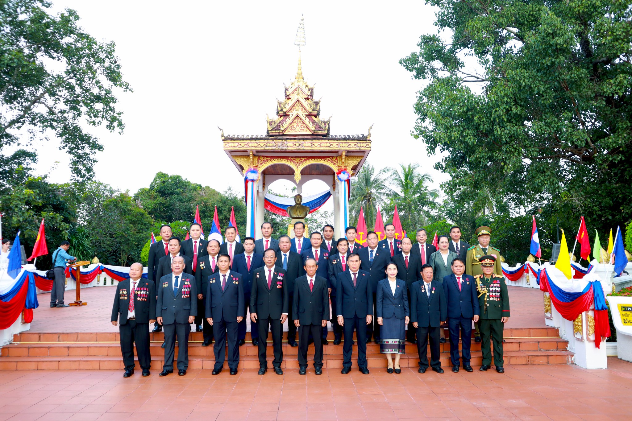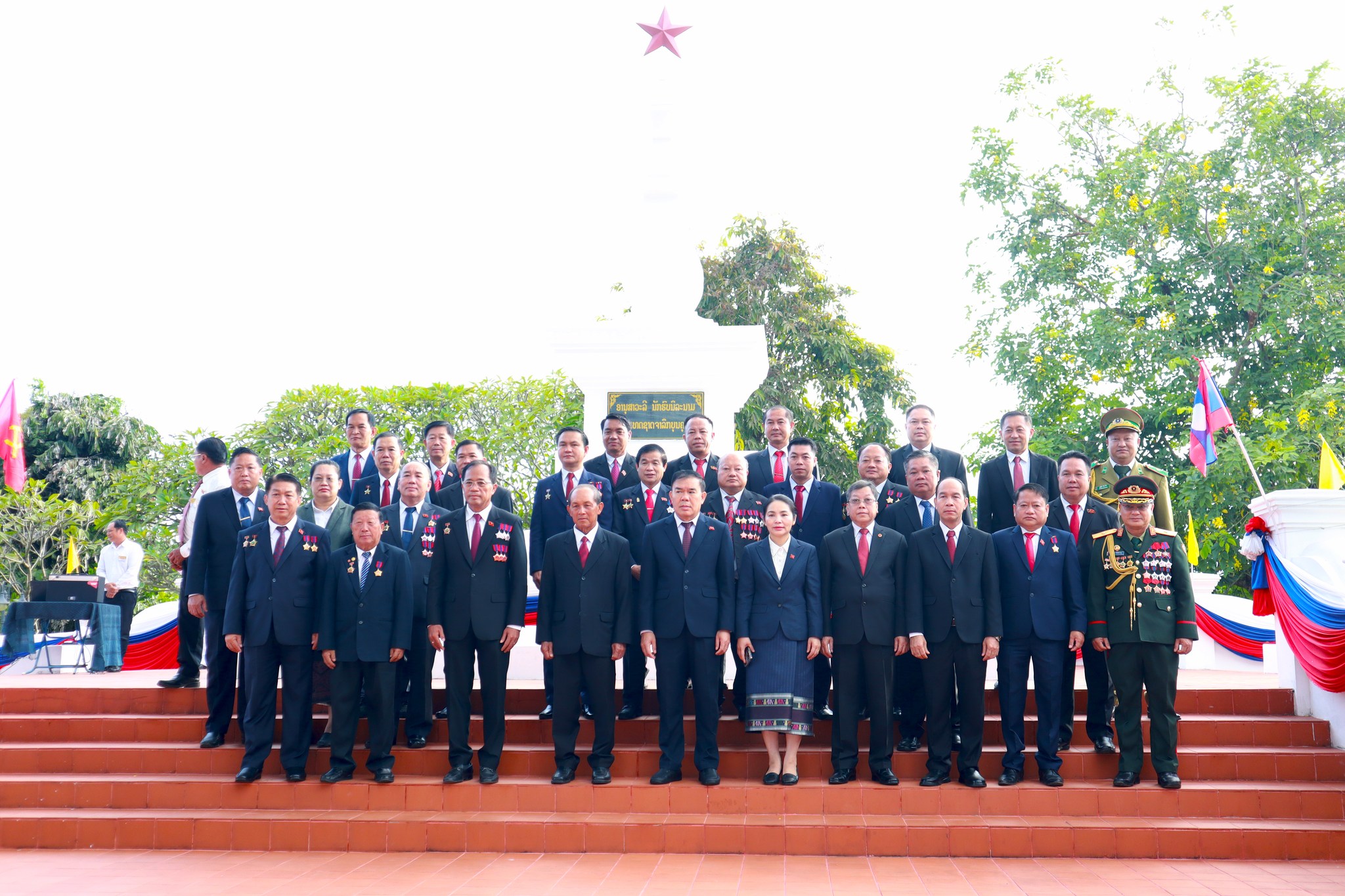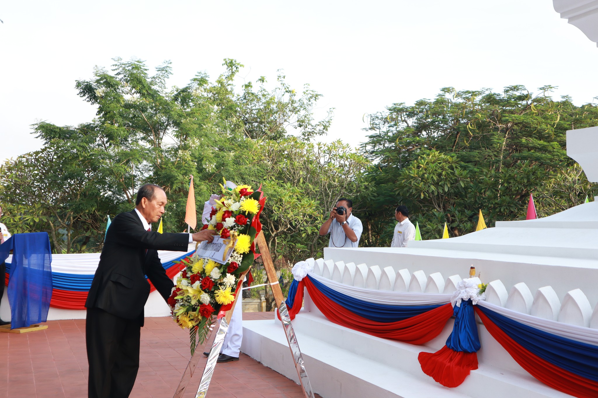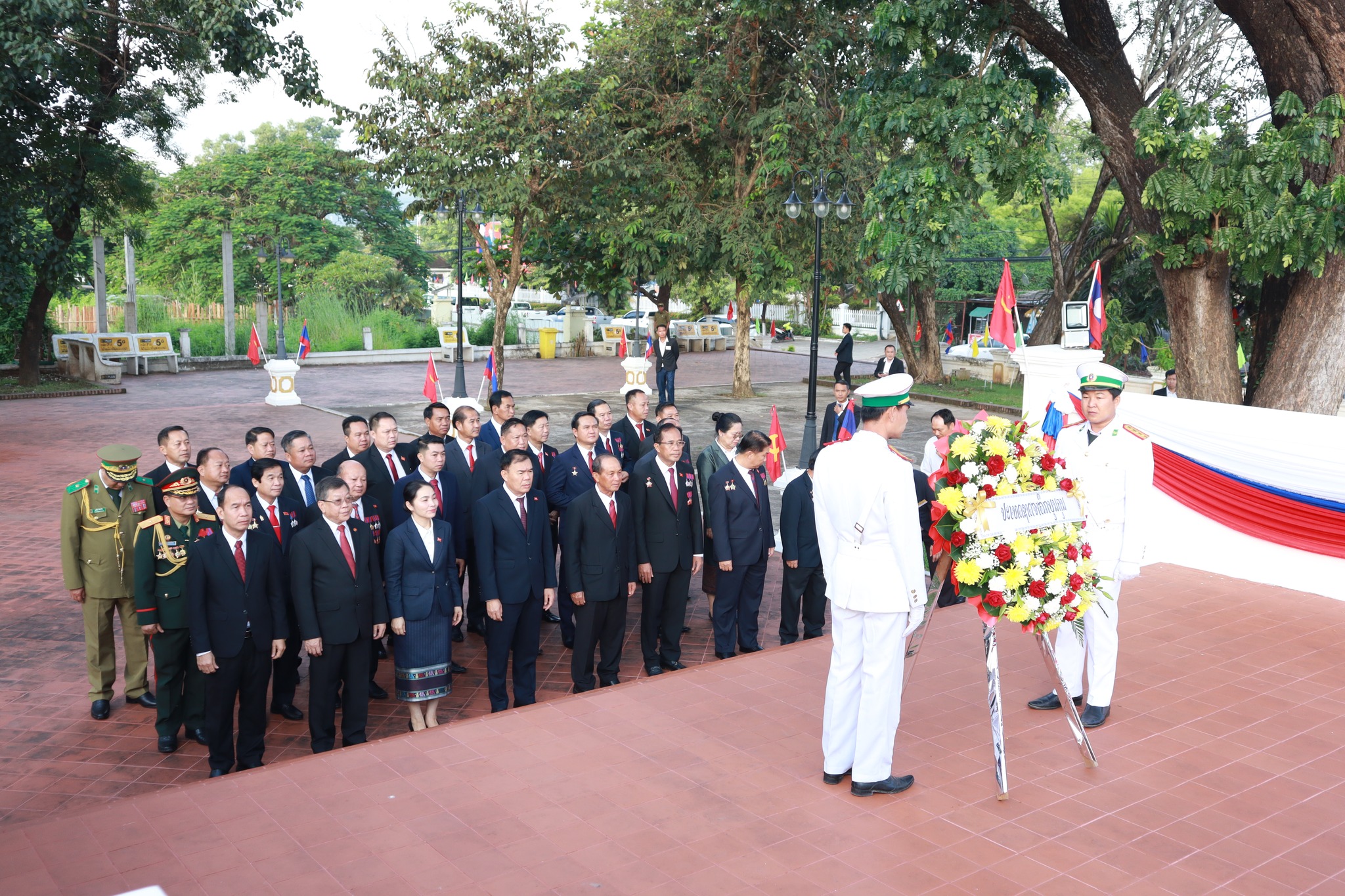 ຄະນະບໍລິຫານງານພັກແຂວງ ຫຼວງພະບາງ ວາງພວງມາລາ ແລະກະຕ່າດອກໄມ້ ຢູ່ອະນຸສາວະລີ 3 ຈຸດ