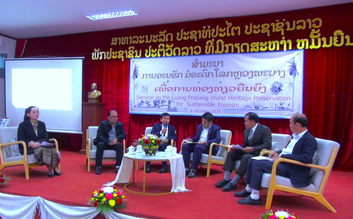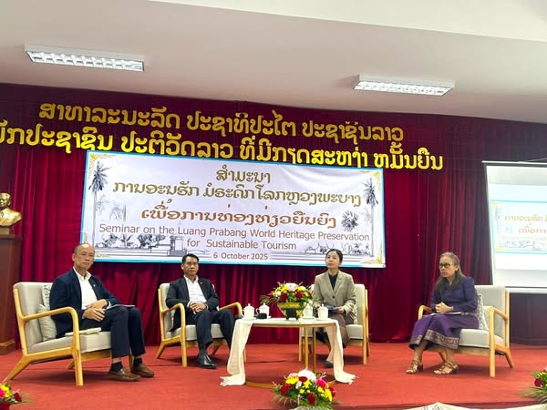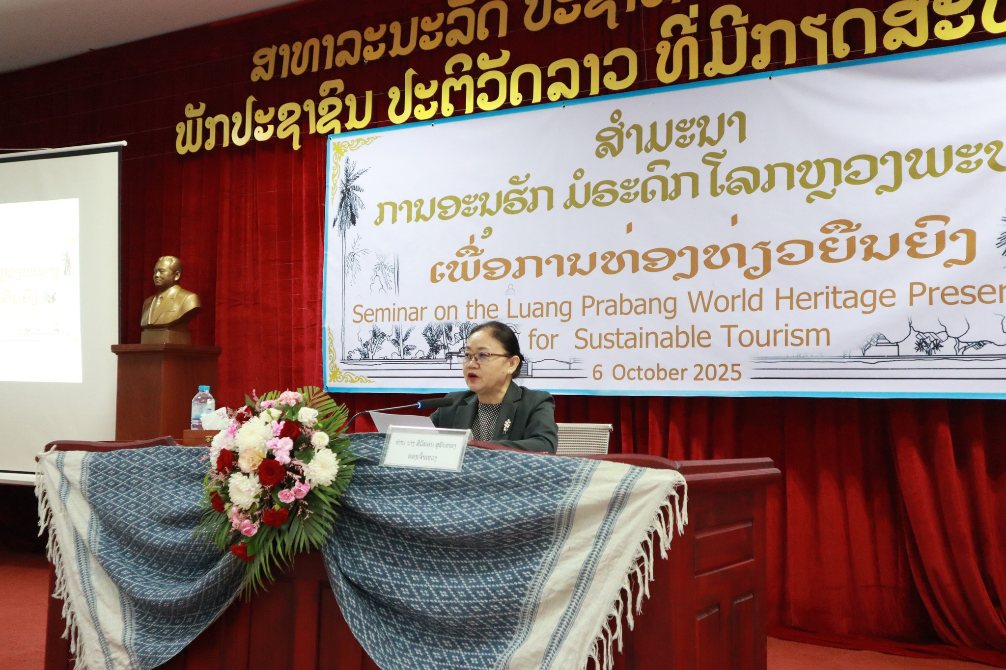 ພະແນກວັດທະນະທໍາ ແລະການທ່ອງທ່ຽວ ແຂວງຫຼວງພະບາງ (ວທຂ) ຂະແໜງຄຸ້ມຄອງ ມໍຣະດົກໂລກ ຫຼວງພະບາງ ໄດ້ຈັດງານສໍາມະນາ ວິຊາການ ພາຍໃຕ້ຫົວຂໍ້ ‘‘ການອະນຸຮັກມໍຣະດົກໂລກ ແລະ ການພັດທະນາການ ທ່ອງທ່ຽວວັດທະນະທຳ ແບບຢືນຍົງ’’ ຂື້ນໃນວັນທີ 6 ຕຸລາ 2025 ທີ່ພະແນກ ວທ ແຂວງ ໂດຍມີທ່ານ ນາງ ສີລິພອນ ສຸພັນທອງ ຮອງເຈົ້າແຂວງຫຼວງພະບາງ , ທ່ານ ປອ ນາງ ສຸດາພອນ ຄົມທະວົງ ຫົວໜ້າພະແນກ ວທ, ມີຜູ້ຕາງໜ້າຈາກ ກົມຄຸ້ມຄອງມໍລະດົກ ພ້ອມດ້ວຍ ນັກວິທະຍາກອນ, ສໍາມະນາກອນ, ຊ່ຽວຊານ ແລະ ແຂກທີ່ຖືກເຊີນຈາກສູນກາງ, ແຂວງຫຼວງພະບາງ, ຕ່າງແຂວງ ແລະ ຕ່າງປະເທດເຂົ້າຮ່ວມ.