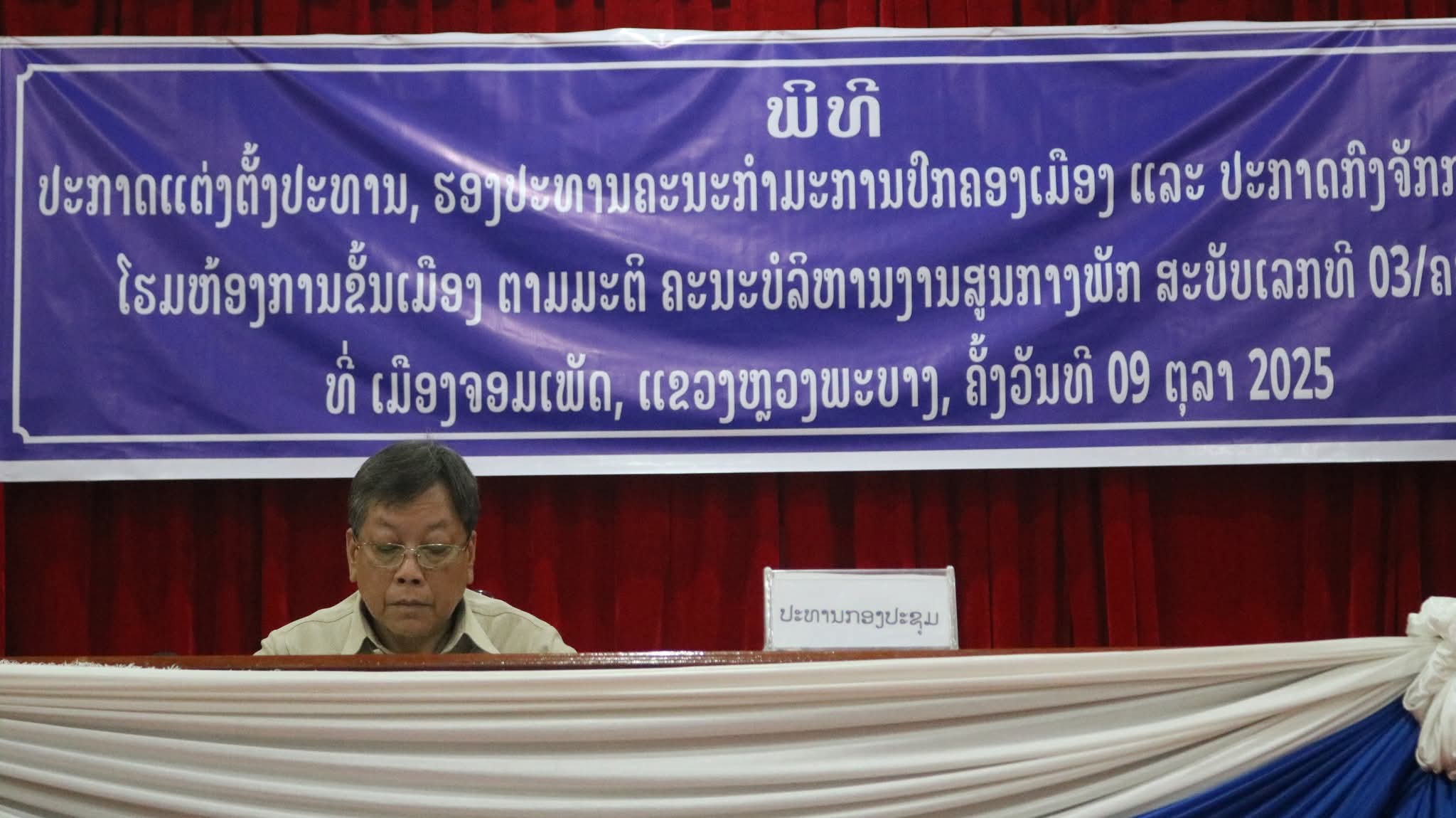 ວັນທີ 9 ຕຸລາ 2025, ຢູ່ສະໂມສອນ ຂອງເມືອງຈອມເພັດ ໄດ້ມີພິທີປະກາດແຕ່ງຕັ້ງປະທານ, ຮອງປະ ທານຄະນະກຳມະການປົກຄອງເມືອງ ແລະ ປະກາດການຈັດຕັ້ງຂັ້ນເມືອງຈອມເພັດ ແຂວງຫຼວງພະບາງ ຂື້ນຢ່າງເປັນທາງການ ໂດຍໃຫ້ກຽດເປັນປະທານ ຂອງ ສະຫາຍ ຄຳຄ່ອງ ພົມມະປັນຍາ ຄະນະປະຈຳພັກແຂວງ, ຫົວໜ້າ ຄະນະຈັດຕັ້ງ ແຂວງຫຼວງພະບາງ, ມີບັນດາສະຫາຍຄະນະປະຈຳພັກ, ກຳມະການພັກເມືອງ, ຫົວໜ້າ-ຮອງຫົວໜ້າ ຫ້ອງການທີ່ກ່ຽວຂ້ອງ ແລະການນໍາທີ່ມາຈາກພະແນກການຂອງແຂວງ-ເມືອງອ້ອມຂ້າງເຂົ້າຮ່ວມ.