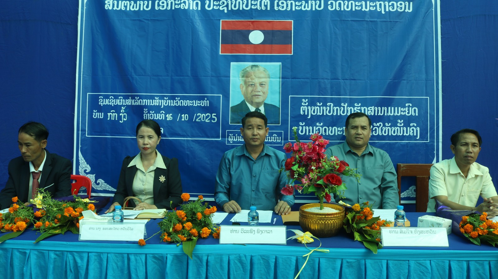 ພິທີປະກາດ ຮັບຮອງເອົາບ້ານກົກງີ້ວ ເມືອງຈອມເພັດ ແຂວງຫຼວງພະບາງ ເປັນບ້ານວັດທະນະທຳ ແຫ່ງທີ 56 ຂອງເມືອງຈອມເພັດ ໄດ້ຈັດຂື້ນໃນວັນທີ 15 ຕຸລາ 2025 ນີ້ ໂດຍການເຂົ້າຮ່ວມຂອງທ່ານ ວິລະພົງ ພົງດາລາ ຮອງປະທານຄະນະກຳມະການປົກຄອງເມືອງຈອມເພັດ, ທ່ານ ນາງ ພອນສະໄຫວ ວັນວິໄລ ຫົວໜ້າຫ້ອງການ ວັດທະນະທຳ ແລະ ການທ່ອງທ່ຽວເມືອງ, ມີບັນດາທ່ານຫົວໜ້າຫ້ອງການ, ແຂກຖືກເຊີນຈາກກຸ່ມບ້ານ, ຜູ້ຕ່າງໜ້າຈາກບ້ານອອ້ມຂ້າງ ແລະ ພໍ່ແມ່ປະຊາຊົນພາຍໃນບ້ານເຂົ້າຮ່ວມ.
