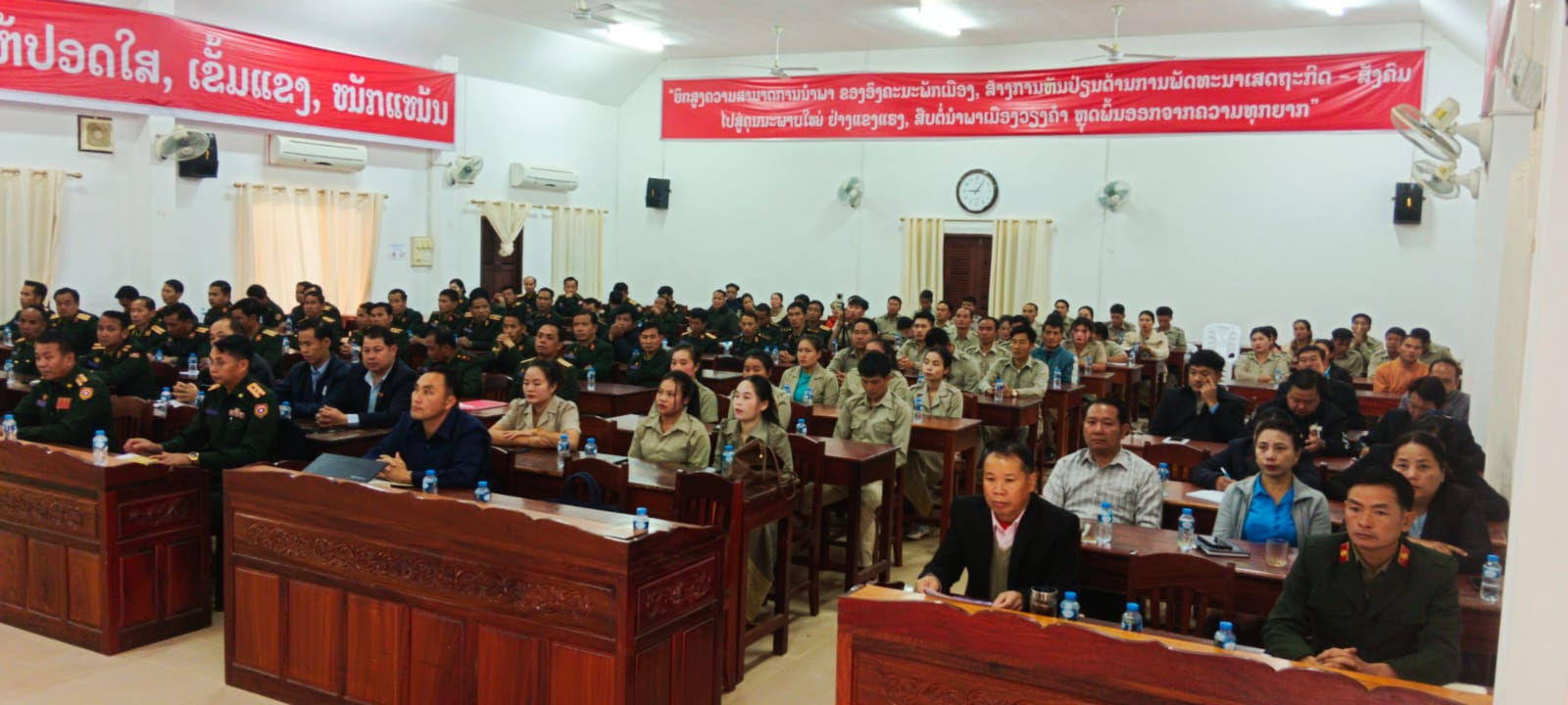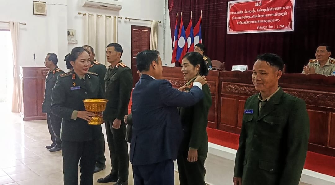 ພິທີປະກາດເລື່ອນຊັ້ນ, ເລື່ອນທຽບຊັ້ນ, ປະດັບຊັ້ນໃຫ້ນາຍທະຫານ ແລະລັດຖະກອນປ້ອງກັນຊາດ ຢູ່ກອງບັນຊາການທະຫານເມືອງວຽງຄຳ